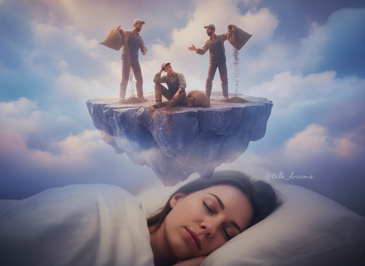 Снилось, будто я внизу наблюдаю за рабочими. Они ссыпают из мешков то ли землю, то ли стройматериалы. Один из них потерял равновесие и свалился вниз, ударился о камень. Я думала, что буду очевидцем неприятного, но он встал и начал говорить. Сотрудники объяснили ему правила безопасности. Непонятно кто эти люди и как этот образ относится ко мне?!